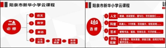 新华小学的云课程丰富多彩,既有必修,又有选修。除了规定的国家课程基础,孩子们还可以通过阳泉教育公共资源服务平台移动端,自主选择“新华七彩课程”,可谓是“一人一课表”,创客机器人、烹任美食汇、百变魔方……立体化、多元化的线上自主学习内容构成了学校“五育”融合课程模型——新华小学“A+”生命成长云课堂。