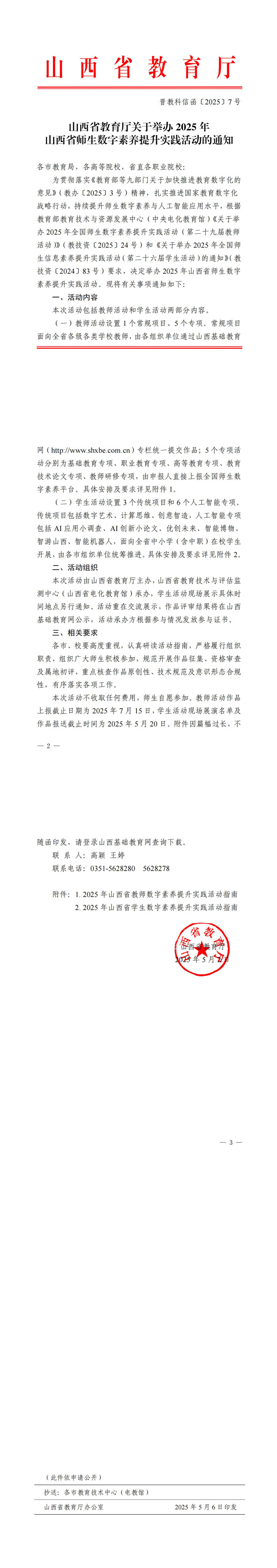 山西省教育厅关于举办2025年山西省师生数字素养提升实践活动的通知